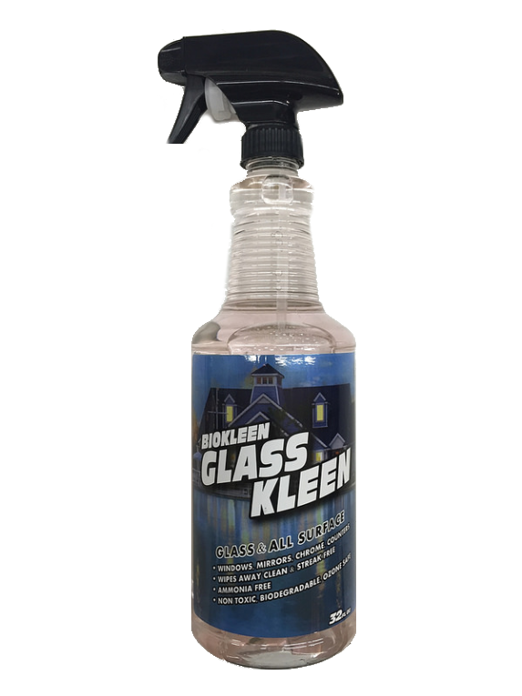Glass Cleaner - Biokleen Glass Kleen A glass window cleaner that makes cleaning glass and surfaces quick and easy. Wipes away clean, leaving surface streak free and sparkling clean. That’s what it’s about, right? No rinsing needed with this glass cleaner and leaves no hazy residue. Glass window cleaner effective enough to remove grease, dirt, smoke film, fingerprints and regular build up. Uses: Cleans a wide variety of glass and hard surfaces: windows, mirrors, counters, floors, Formica, ceramic tile, chrome, appliances and automotive glass. Effective on all non-porous surfaces. Green Cleaning Attributes Ammonia Free No Artificial Fragrance Leaves no Chemical Residue 100% of the packaging is recyclable No Animal Testing - No Animal Ingredients - Cruelty Free Environmentally Friendly, Non toxic, Biodegradable, Non Aerosol, Ozone Safe BioPreferred Use glass window cleaner with a microfiber towel for best results and an ultimate, clear view.