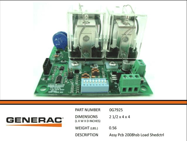 Generac Guardian ASSEMBLY PCB 2008 HSB LOAD SHED COTROL 0G7925