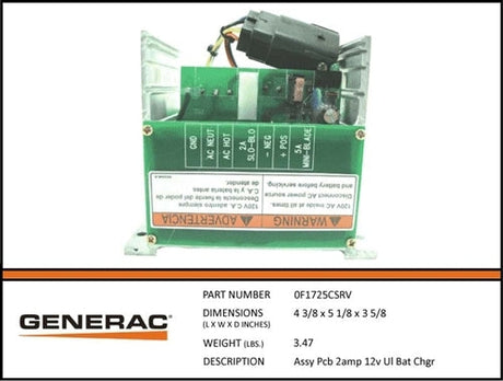 Generac 0F1725CSRV Battery Charger Assembly PCB 2AMP 12V UL