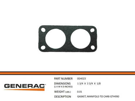 Generac 0D4023 Gasket, Manifold to Carb GTH990