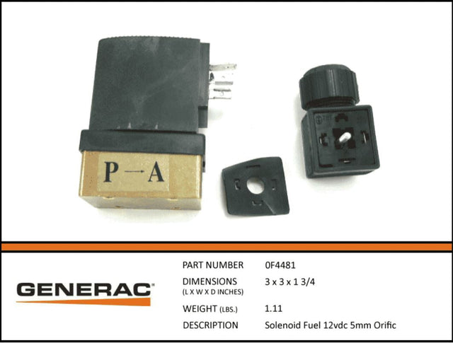 Generac Solenoid Fuel 12VDC 5MM Orific Part# 0F4481