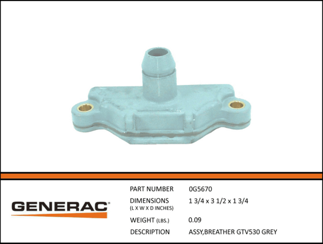 Generac ASSY,Breather GTV530 Grey Part# 0G5670