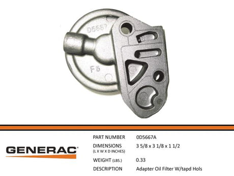 Generac Guardian 0D5667A ADAPTER OIL FILTER W/TAPD HOLS