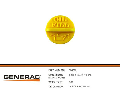 Generac Guardian 086690 CAP OIL FILL,YELLOW