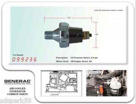 Generac Guardian Generator Part # G099236 Oil Pressure Switch 8 PSI New OEM