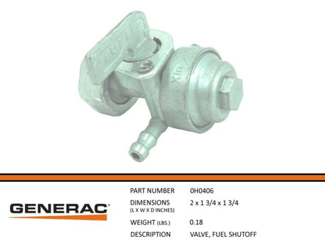 Generac Guardian 0H0406 VALVE FUEL SHUTOFF