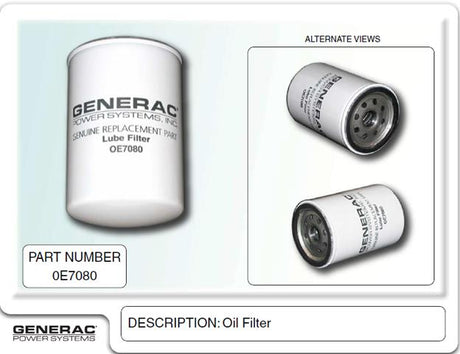 Generac Guardian 0E7080 OIL FILTER 1.6,2.5,3.0,4.2L G3